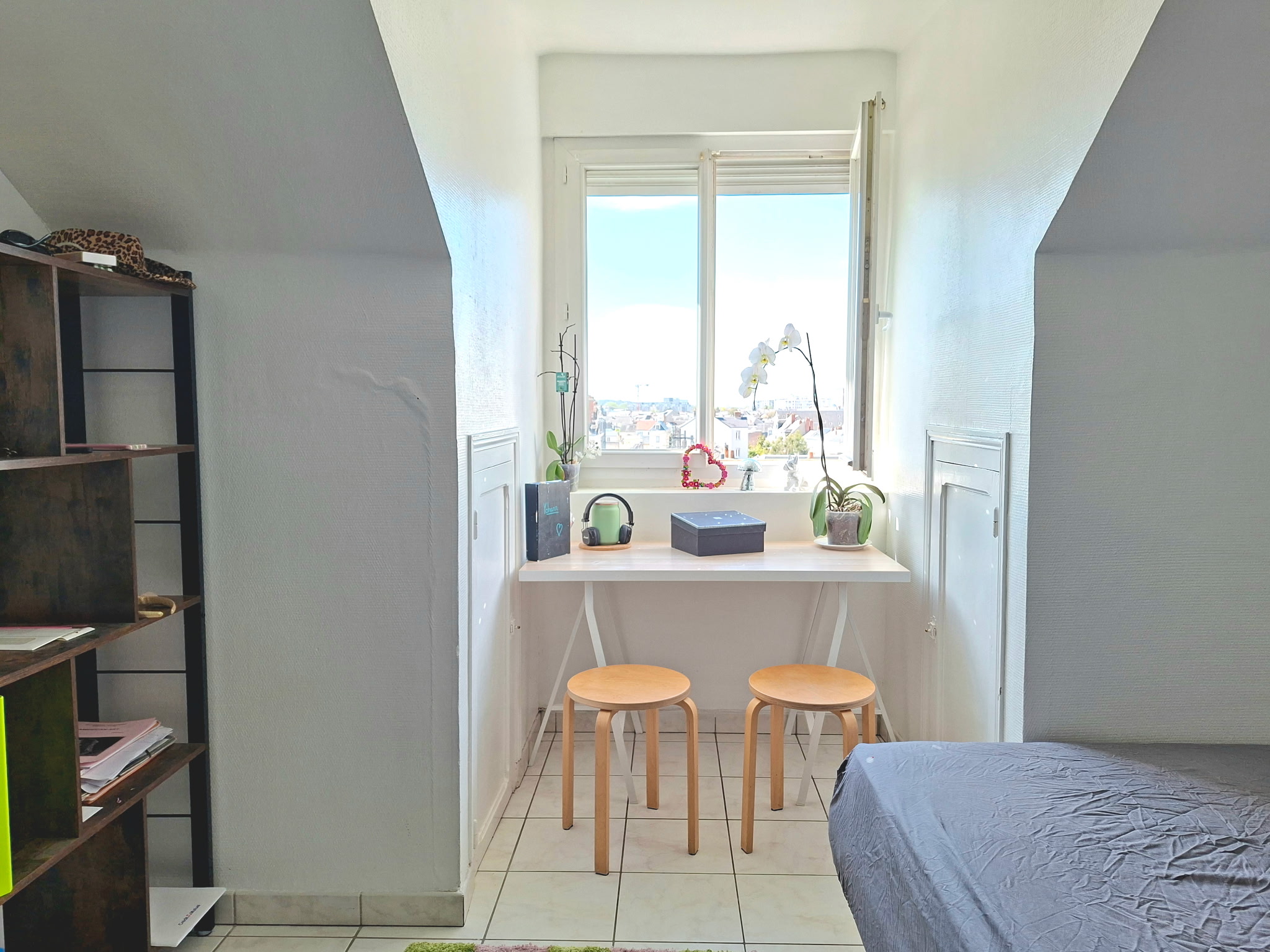 Etudiant(e), à Tours Centre, Avenue de Grammont, face à l’arrêt de bus et tram « Charcot », au troisième et dernier étage d’un petit immeuble avec une pièce principale, une cuisine aménagée et une salle d’eau avec WC.
