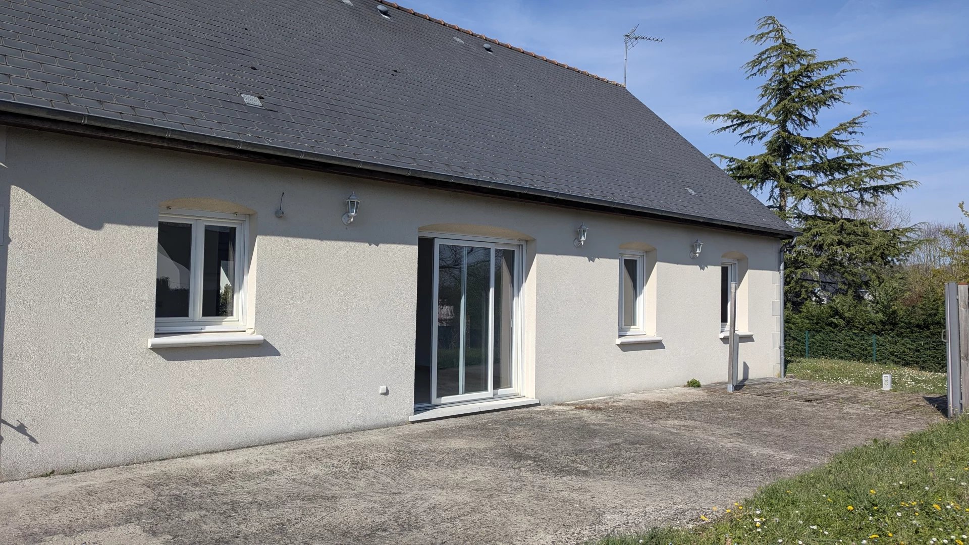 Maison plain pied récente avec combles aménageables comprenant : Une entrée avec placard, un salon séjour lumineux de 32 M² avec accès terrasse par baie vitrée (exposition SUD) , une cuisine semi-ouverte avec meubles hauts et bas, cellier de rangement, un dégagement desservant 3 chambres dont 2 avec placards, une salle de bains et wc séparé.