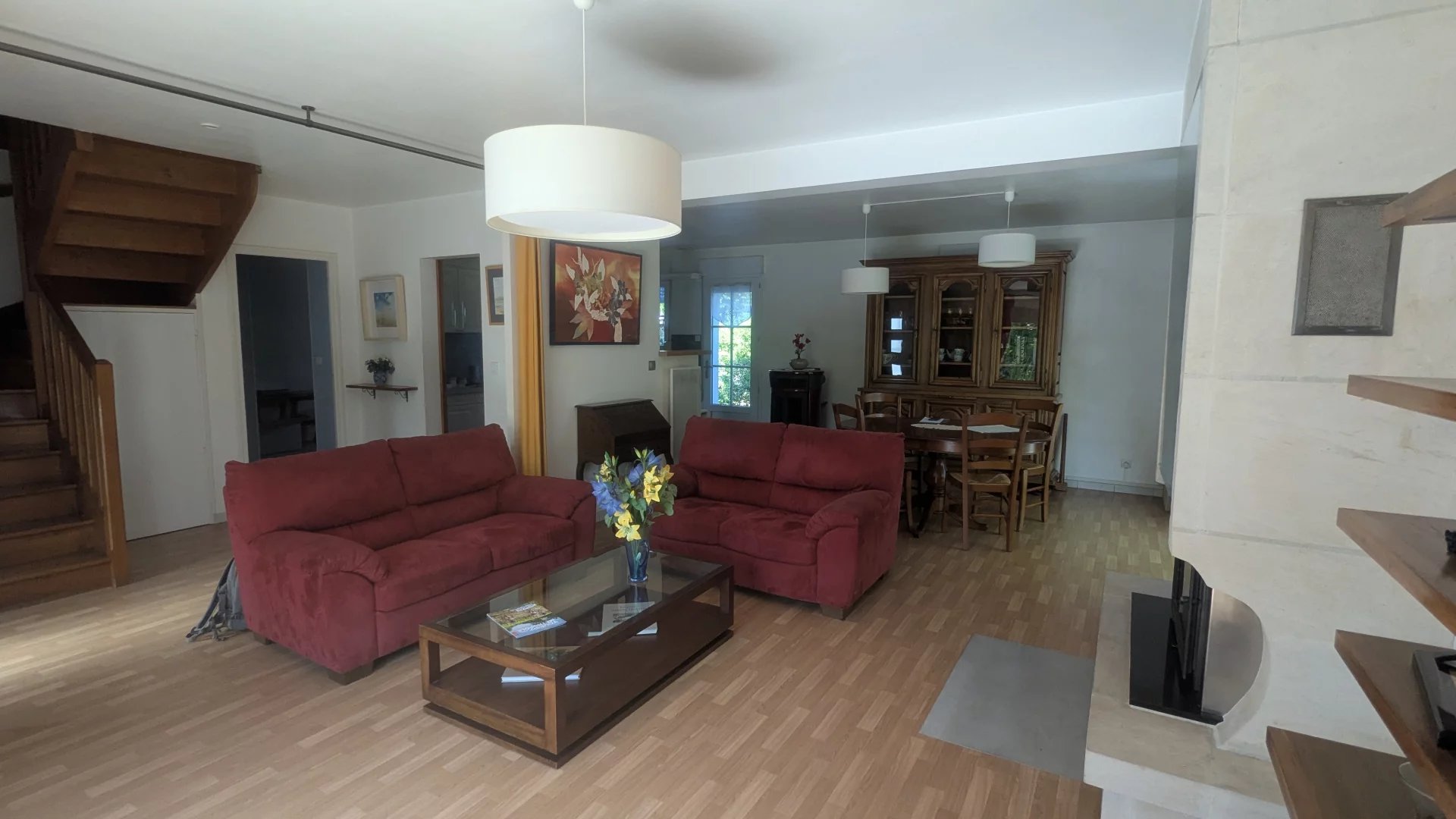MAISON DE QUALITE 150 m² habitables sur joli terrain clos de 800 m² arboré et agrémenté avec portail électrique comprenant une entrée avec rangements donnant sur agréable séjour lumineux de 40 m² avec baies vitrées ouvrant l’accès à 2 terrasses et pergola, poêle à granulés récent en place, une cuisine aménagée et équipée avec électroménager, une chambre au rez-de-chaussée avec salle d’eau attenante refaite récemment.